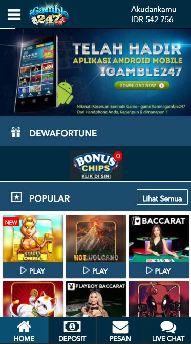 1. Masuk ke menu Browser Mobile anda dan Kunjungi www.Igamble247.com setelah itu klik menu MOBILE lalu klik button Download Now, dan tunggu proses download selesai.